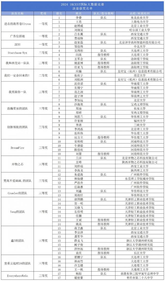 2024 IKCEST第六届“一带一路”国际大数据竞赛暨第十届百度&西安交大大数据竞赛获奖名单如下: