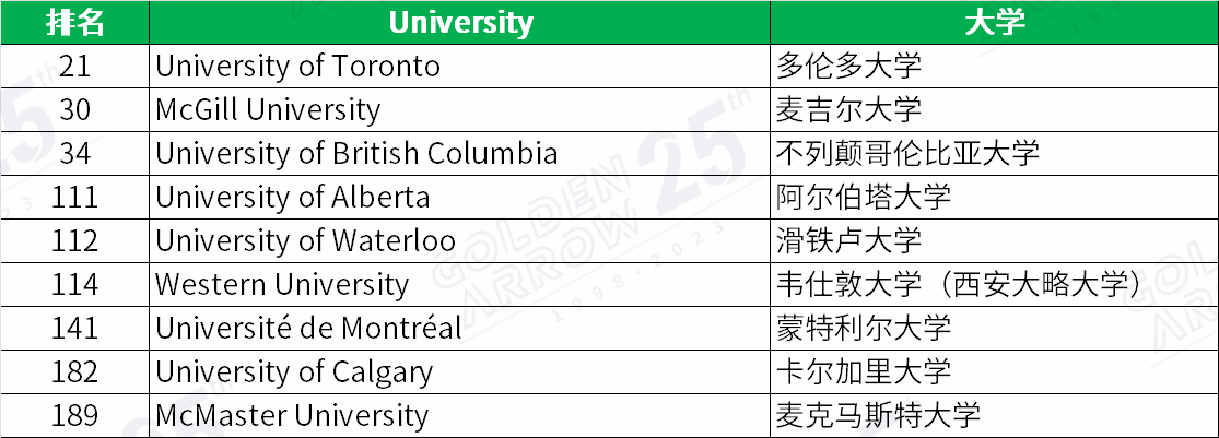 加拿大跻身世界百强的三所高校中,多伦多大学排名越过麦吉尔大学,位居全球第21位,不列颠哥伦比亚大学位居第34位,排名均有所上升。