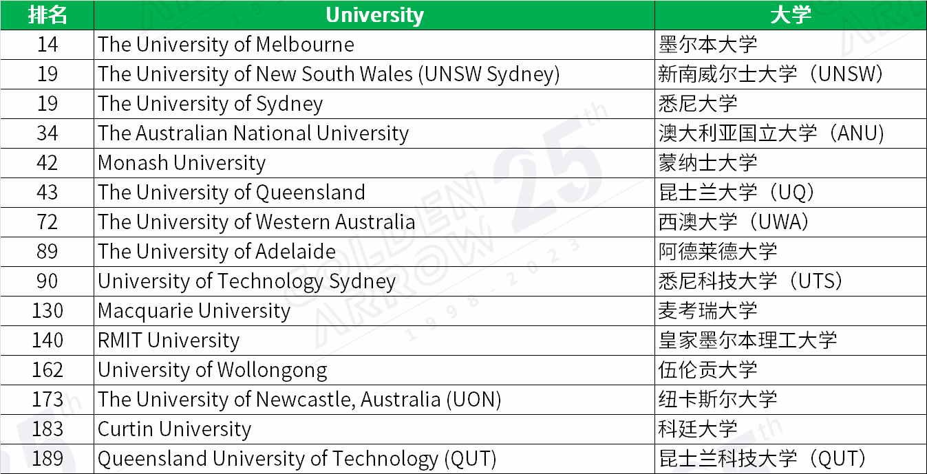 澳大利亚院校排名提升最大,澳洲八大悉数跻身世界百强榜单。除澳大利亚国立大学排名下降4位外,墨尔本大学,悉尼大学分别提升19和22个名次,进入世界前20,蒙纳士大学进入世界前50。最惊人的是悉尼科技大学,跃升47个位次,跻身世界百强,位列第90位。澳洲院校这波真是赢麻了!目测2024澳洲留学将迎来一波暴涨!以往处在留学鄙视链底端的土澳可能要支棱起来了,从过去许多人的爱理不理到下一个申请季的高攀不起。
