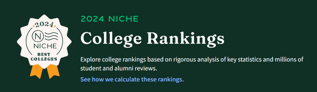 Niche排名以教育部、美国人口普查及联邦调查局等为基础,结合学术、招生、财务和学生生活等数十种公共数据,以及大量学生和家长的真实反馈,来进行评定。