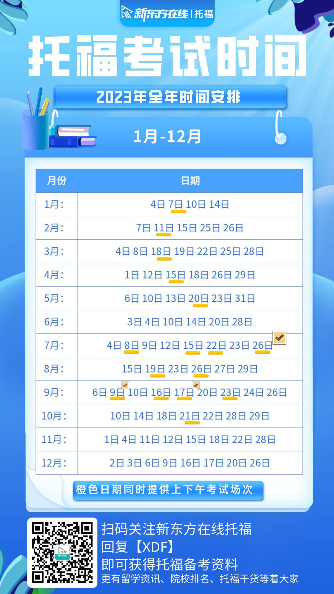 另外线下的托福考试已经全面恢复,并且新增了多个考点,考位比较充足,同学们早规划,早准备,尽可能考出高于学校申请要求的托福成绩,留求艺整理了2023年托福考试时间安排,祝大家早日分手,申请梦校!