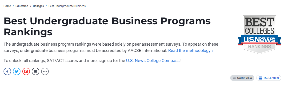 更多美本本科商学院排名、学费、招生人数等信息,同学们可以前往usnews排名官网进行查看!