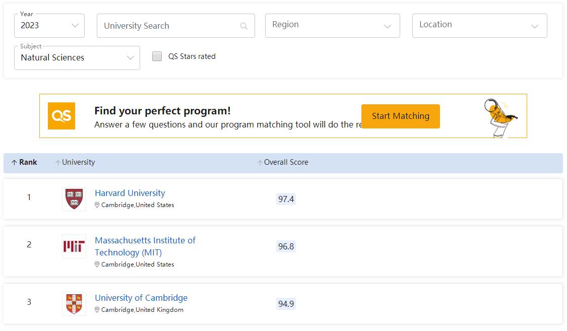 转载说明:文章《qs世界大学自然科学学科最新排名2023完整版》由【岸帮留学】原创发布(部分转载内容均有注明出处,如有侵权请告知),转载请注明文章来源。