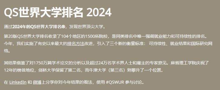 刚刚!2024年QS世界大学排名发布!附qs排名完整版