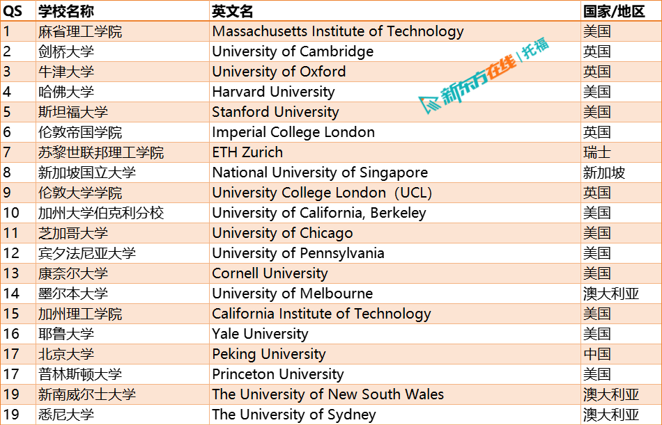 2024qs世界大学排名前20院校如下: