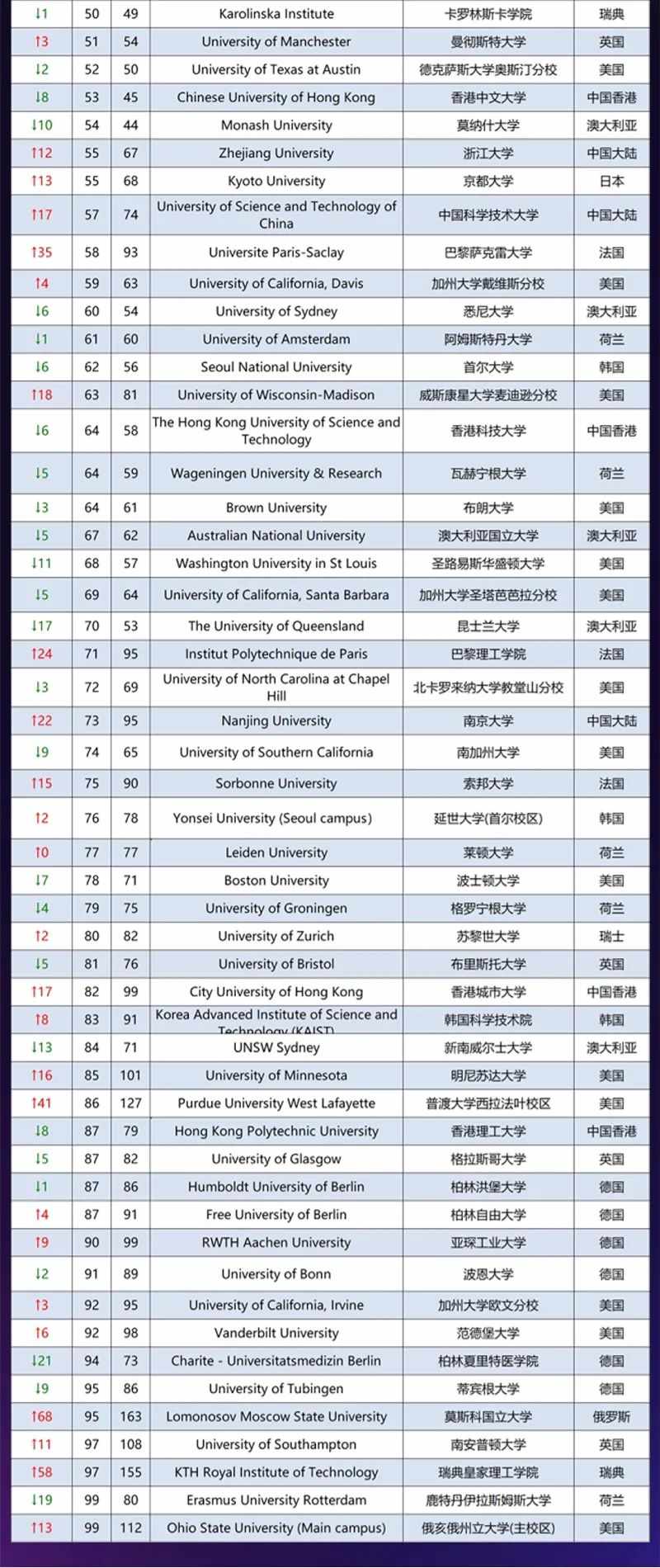 去年的第6名、第7名加州理工学院和普林斯顿大学,今年互换了一下名次;