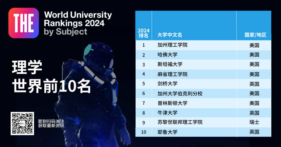 留求艺整理了2024泰晤士世界大学排名、泰晤士学科排名、泰晤士排名官网等内容,今天带来的是2024泰晤士世界大学学科排行榜,希望对大家专业和学校选择有所帮助!今日,泰晤士高等教育(简称THE)更新了2024年度不同学科世界......