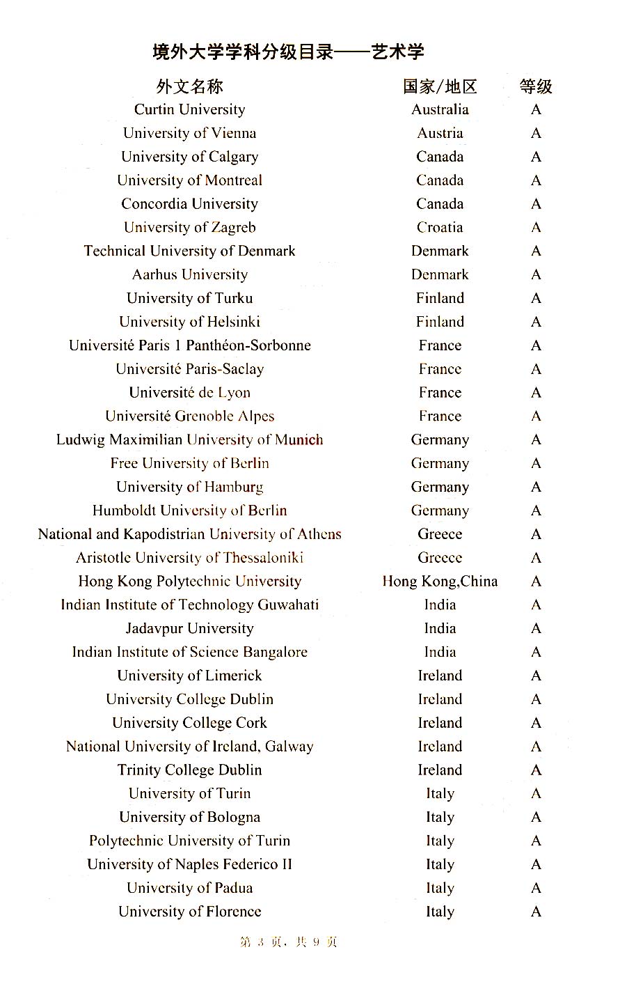 ...成为以后中国看待海归大学的背景的考核!留求艺整理了境外大学学科分级目录(人文社会科学):艺术学大学排名汇总的相关内容,供大家参考!得分前2%评为A+、前5%评为A、前10%评为A-、前40%评为B、前...