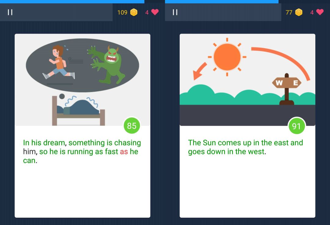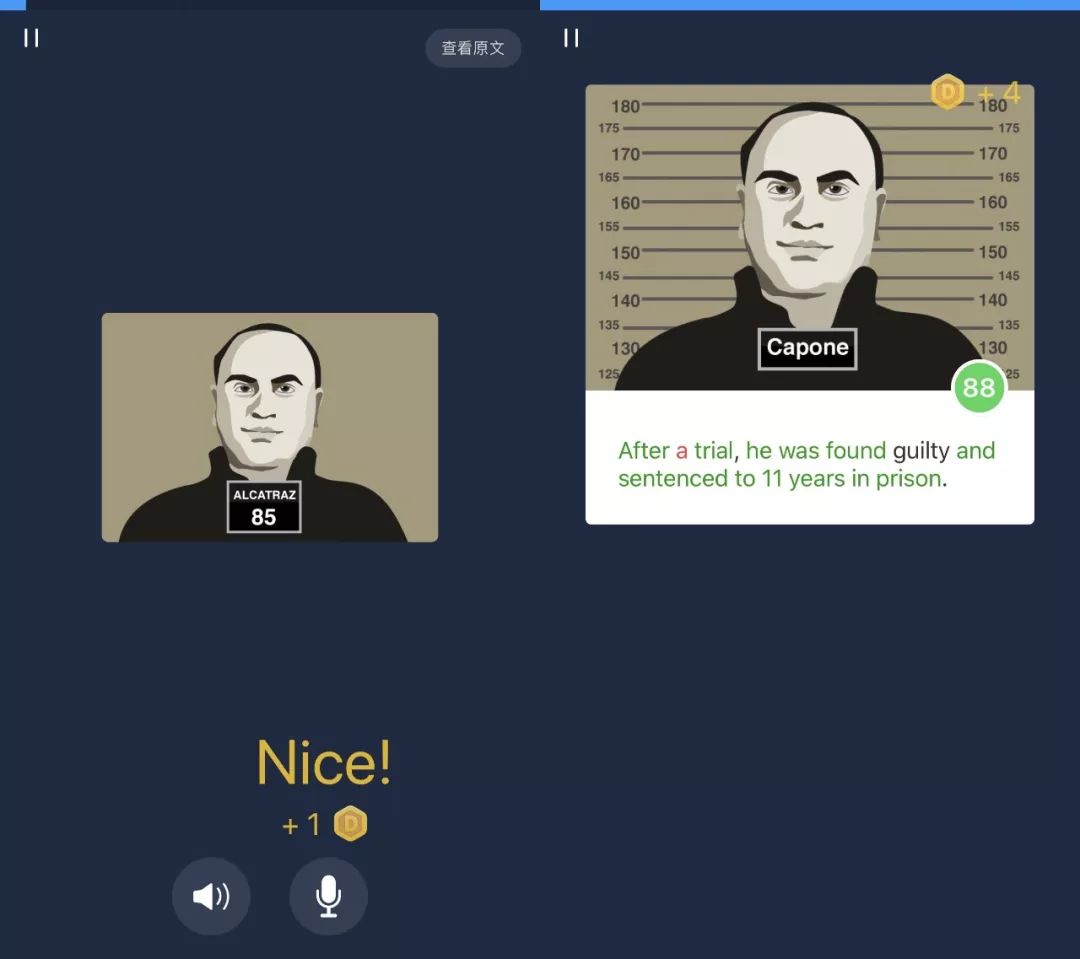 它的打分制度会很严格,每答对一道题都会听到「噌」的一声,然后金币弹出来。