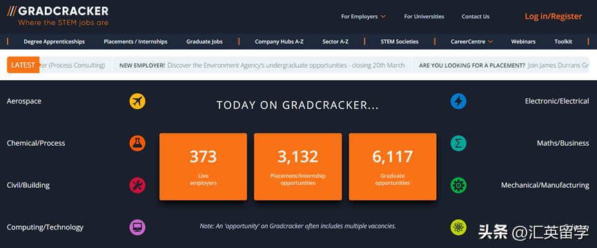 STEM专业学生一定要知道Gradcracker,这是一家专注于工程、电气、计算机、化学处理、环境、数学(商科)等行业的实习和毕业工作的网站,和很多英国大学的STEM学生社团都有联系。