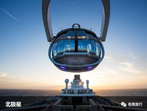 「荣获吉尼斯世界纪录最高游轮观景台的北极星,其设计受到了英国伦敦眼的启发,是工程学上的一个奇迹,可360度旋转的吊杆手臂,宝石形的玻璃舱将游客送往离海平面88.6米的全新高度。