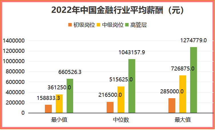 即使是最小值,金融行业初级岗位的年平均薪酬也达到了15.8万元。