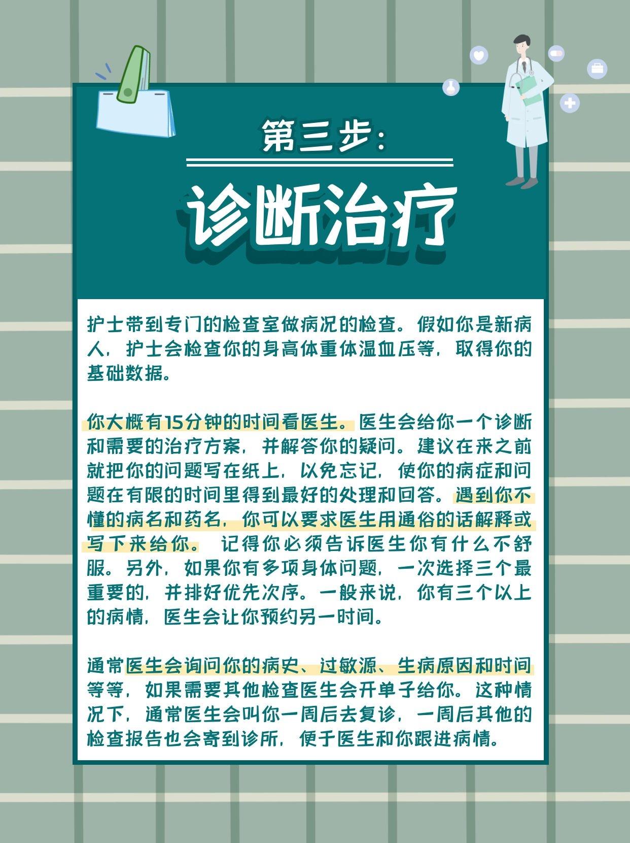 通常医生会询问你的病史、过敏源、生病原因和时间等等,如果需要其他检查医生会开单子给你。这种情况下,通常医生会叫你一周后去复诊,一周后其他的检查报告也会寄到诊所,便于医生和你跟进病情。