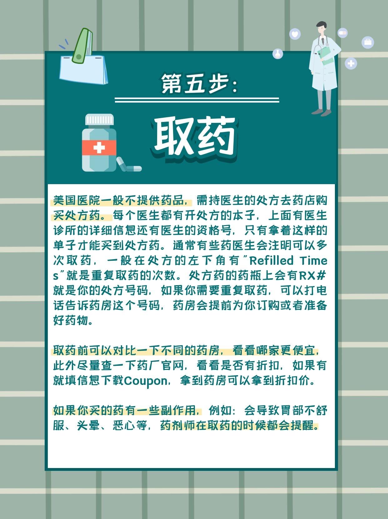 美国医院一般不提供药品,需持医生的处方去药店购买处方药。每个医生都有开处方的本子,上面有医生诊所的详细信息还有医生的资格号,只有拿着这样的单子才能买到处方药。