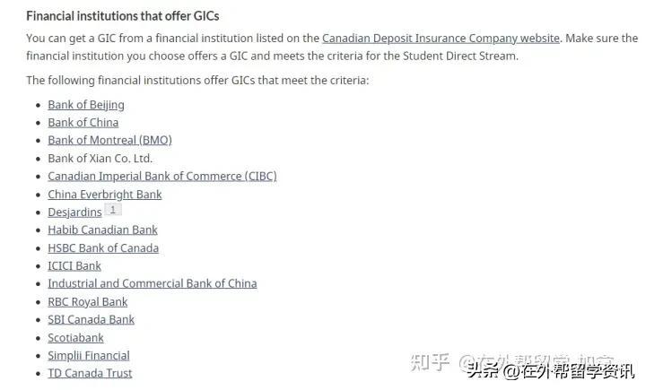 根据加拿大政府官网显示,以下银行支持办理GIC业务: