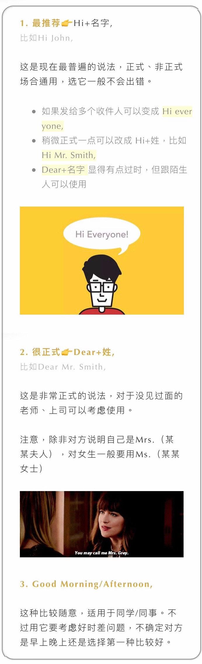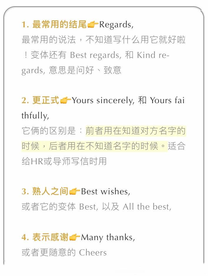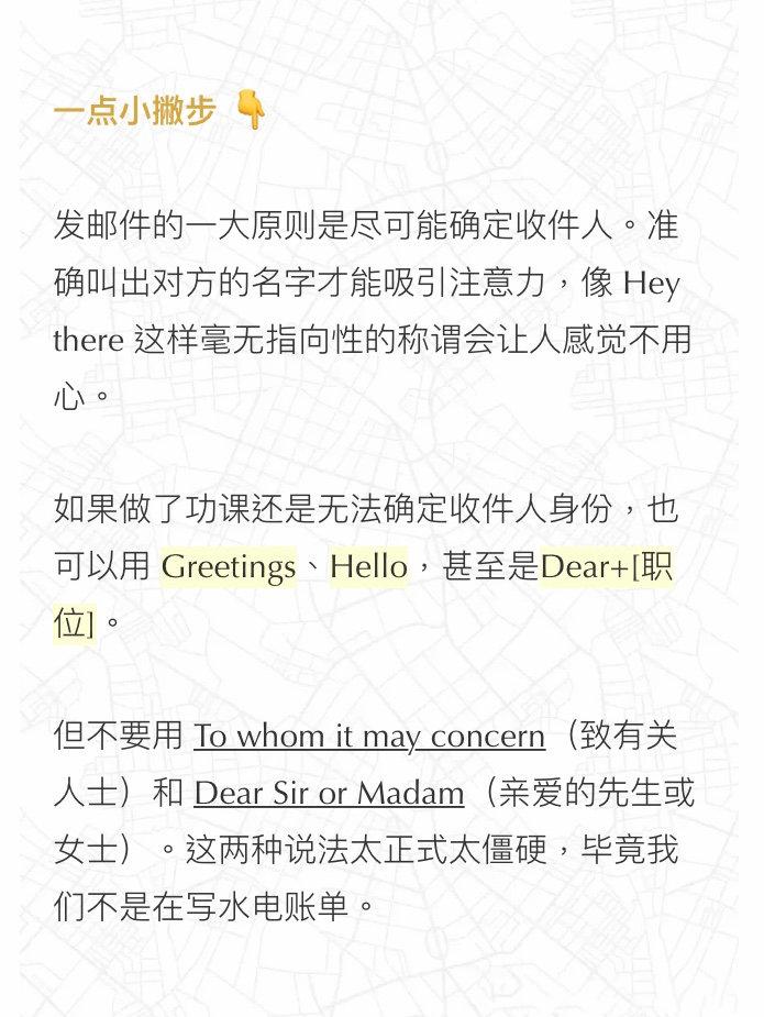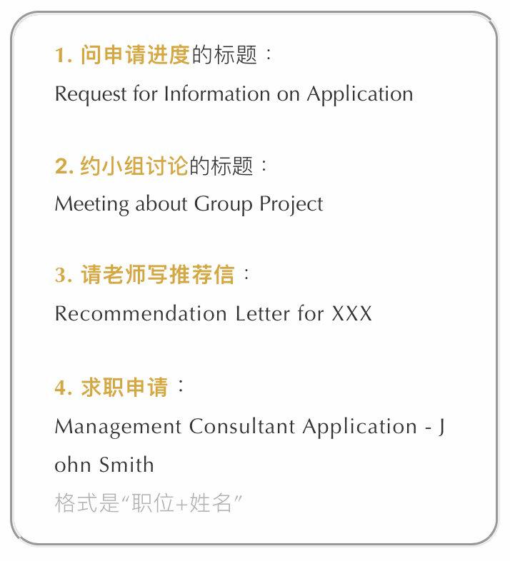 文章涵盖了发邮件时可能遇见不同情况,每种我们都尽可能多地举例说明。建议大家下来,发邮件时选合适场景套用 PS:框框里的重点内容都是图片,方便长按保存。