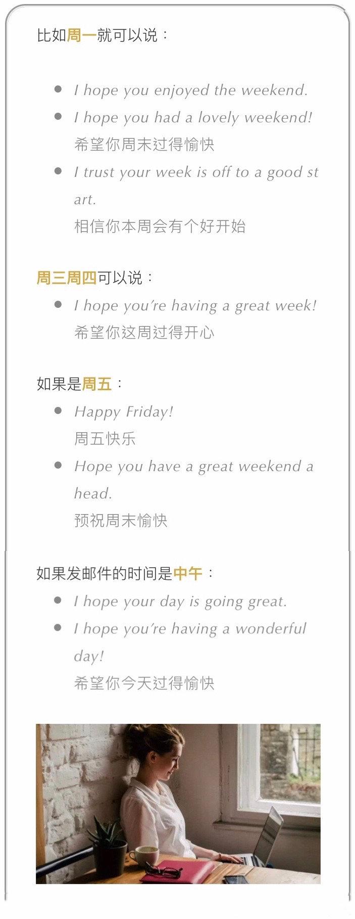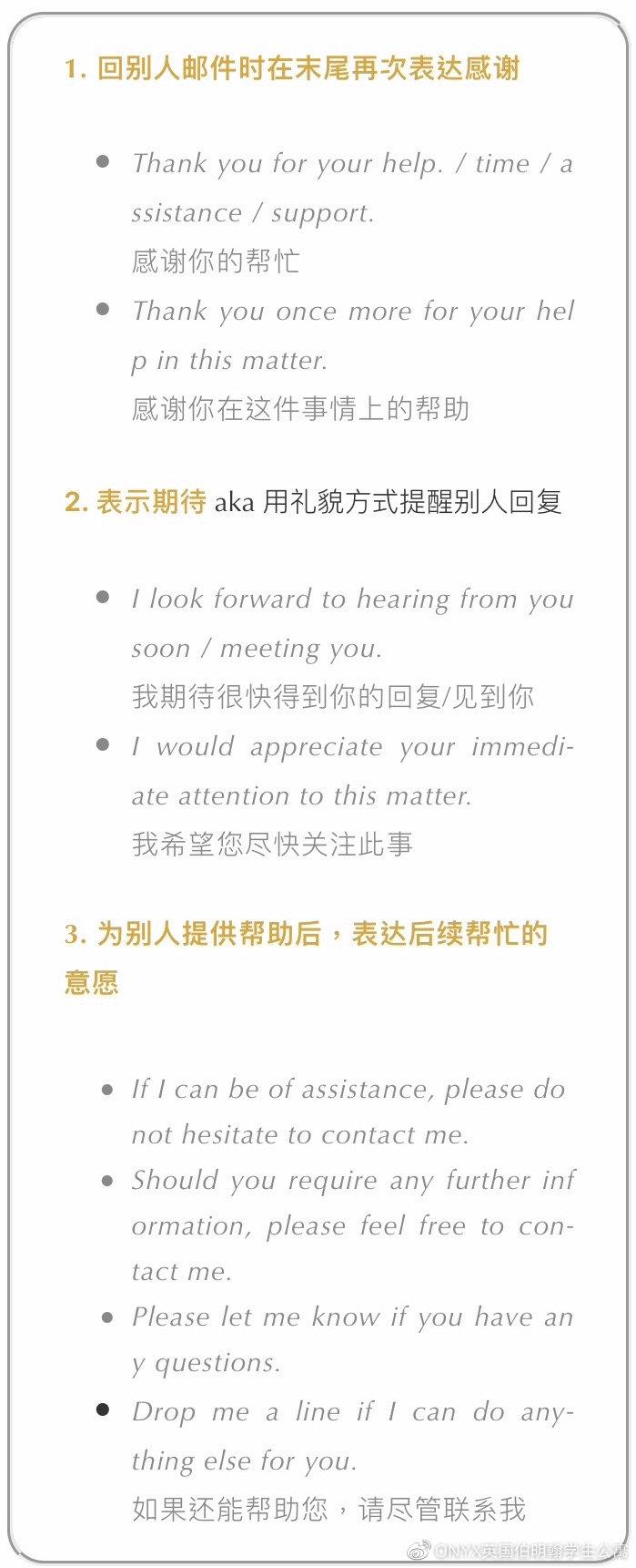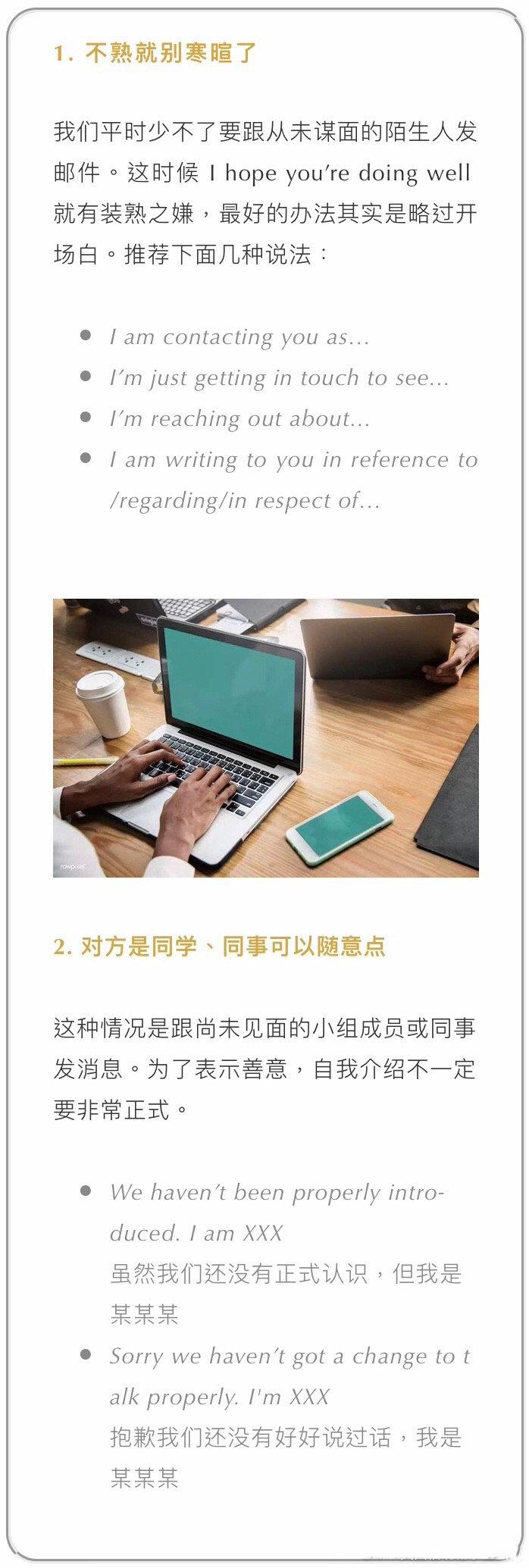 文章涵盖了发邮件时可能遇见不同情况,每种我们都尽可能多地举例说明。建议大家下来,发邮件时选合适场景套用 PS:框框里的重点内容都是图片,方便长按保存。