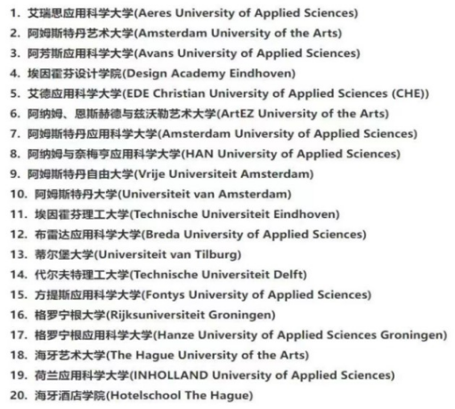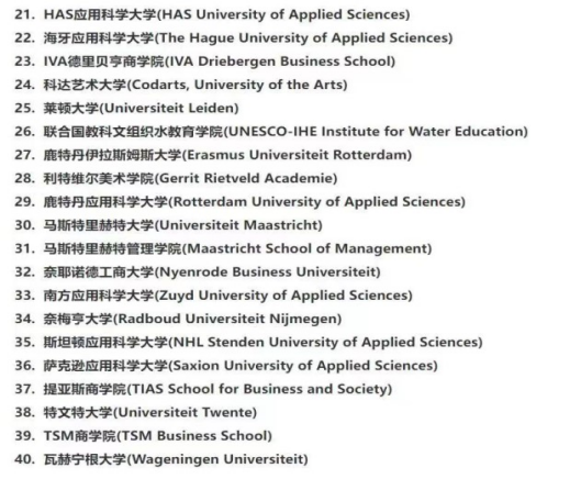 教育部承认学历的荷兰大学有47一所,完整名单如下:
