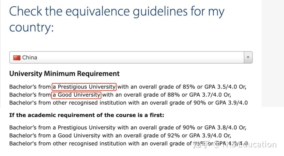 中国本科需要保持在85分的均分成绩,并且要参照自己的学校背景是否在名单里。