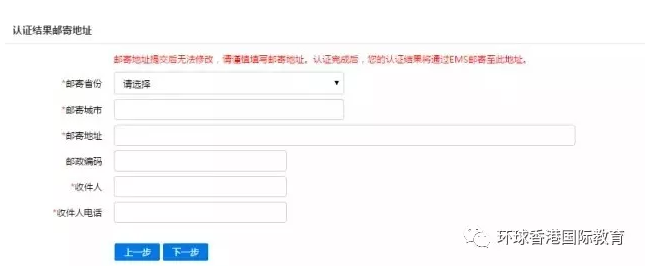 注意:学历认证结果是通过EMS寄送的,所以邮寄地址很重要,请填写一定能收到的地址,电话号码在收到结果之前也不要更换。