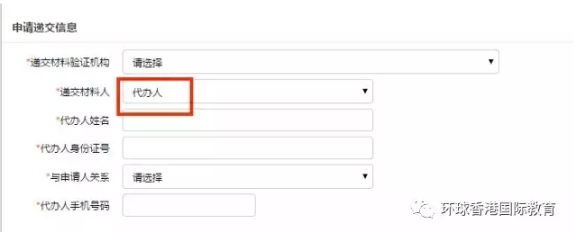 Tips:如果是请人代办,则这里就需要选择递交材料的人为代办人,且递交材料的时候需要提交授权声明。