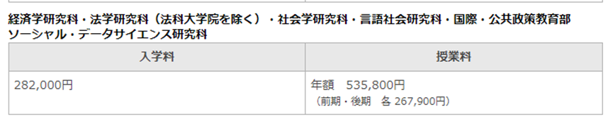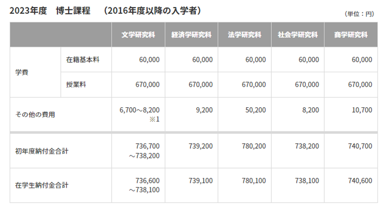 首先,我们看下国公立大学的博士费用。国公立大学一般是由国家或地方政府资助,所以学费也是比较便宜的。