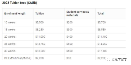 以西澳大学为例,2023年语言班学费如下: