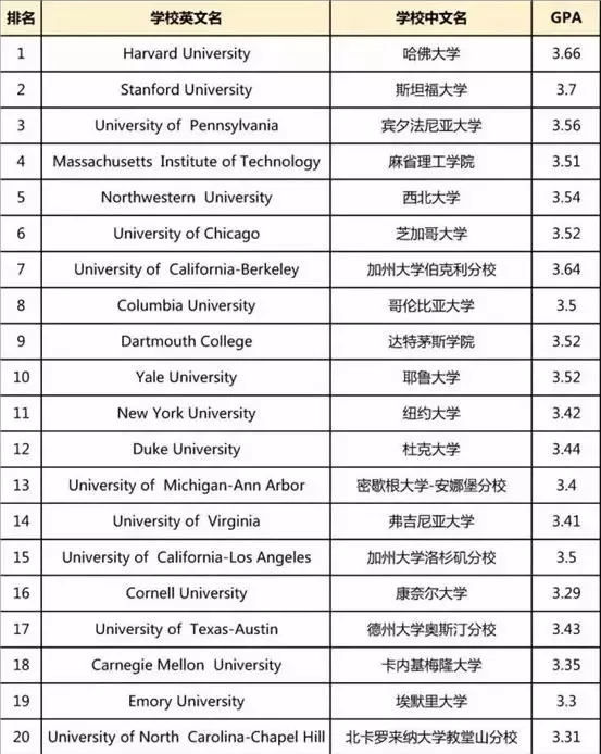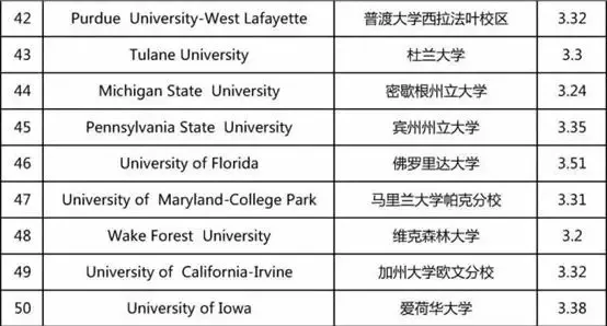 全美TOP50大学GPA入学要求