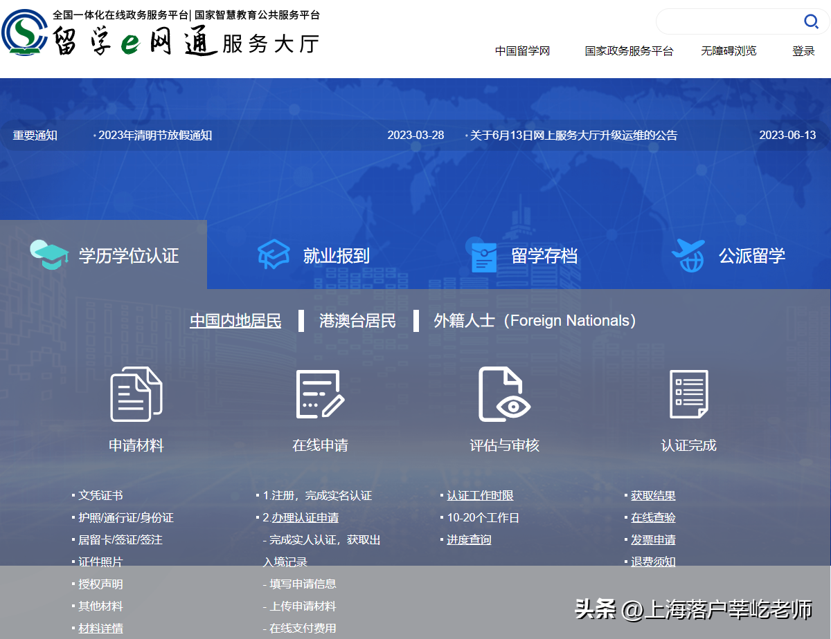 打开教留服认证官网:zwfw.cscse.edu.cn