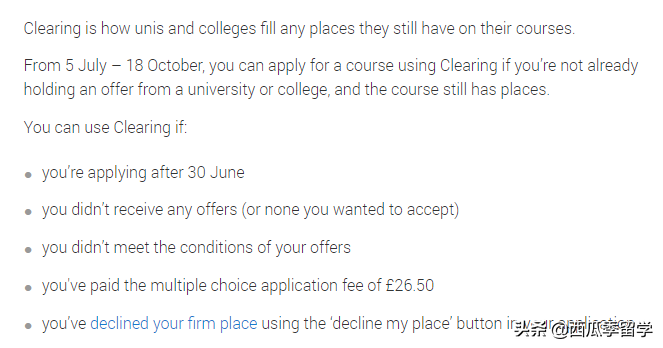 需要注意的是,UCAS允许申报最多5所学校,如果你想加申,每所学校的加申费用为26.5英镑。(见上图中的Clearing )
