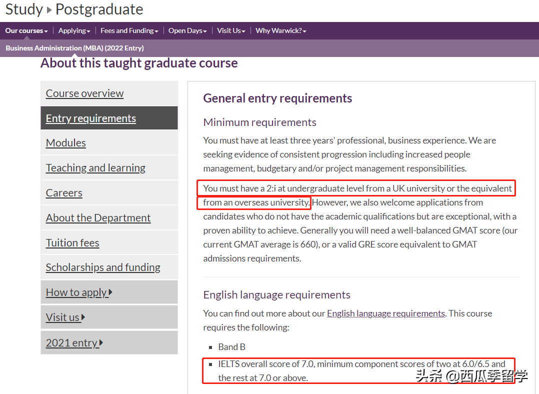 如果是排名更靠前的学校,虽然一般要求也是2等1的成绩,但是录取的要求则会更加严格。例如华威大学(QS排名)