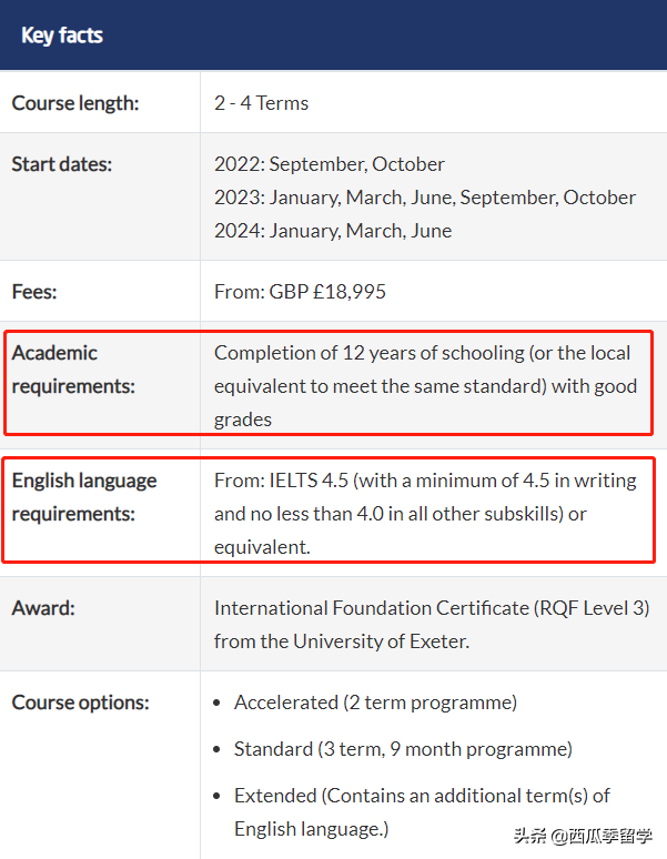 INTO对预科申请的课程时长、开始时间、费用、录取条件等做出了明确要求