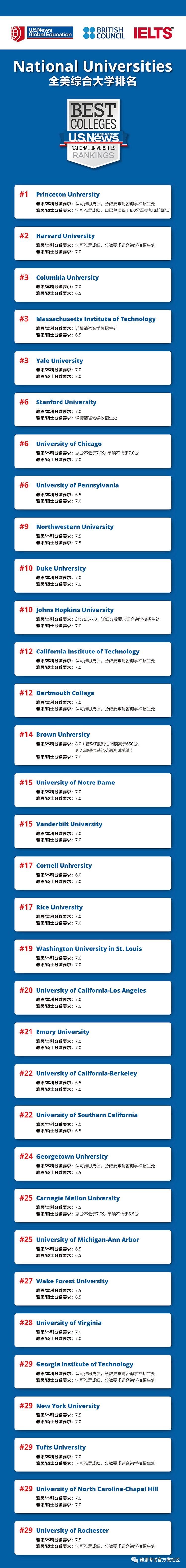 我们再送上2020年U.S.News全美大学排名及雅思成绩要求,请马住!
