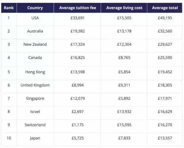 转载说明:文章《各国硕士留学费用一样吗哪个国家费用最低,全球留学费用排名新鲜出炉》由【岸帮留学】原创发布(部分转载内容均有注明出处,如有侵权请告知),转载请注明文章来源。