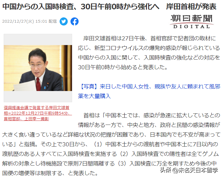 12月27日,日本发布了最新的入境政策。变动比较大的一条是,在中国大陆有7天以内停留经历的人员实行入境检测。