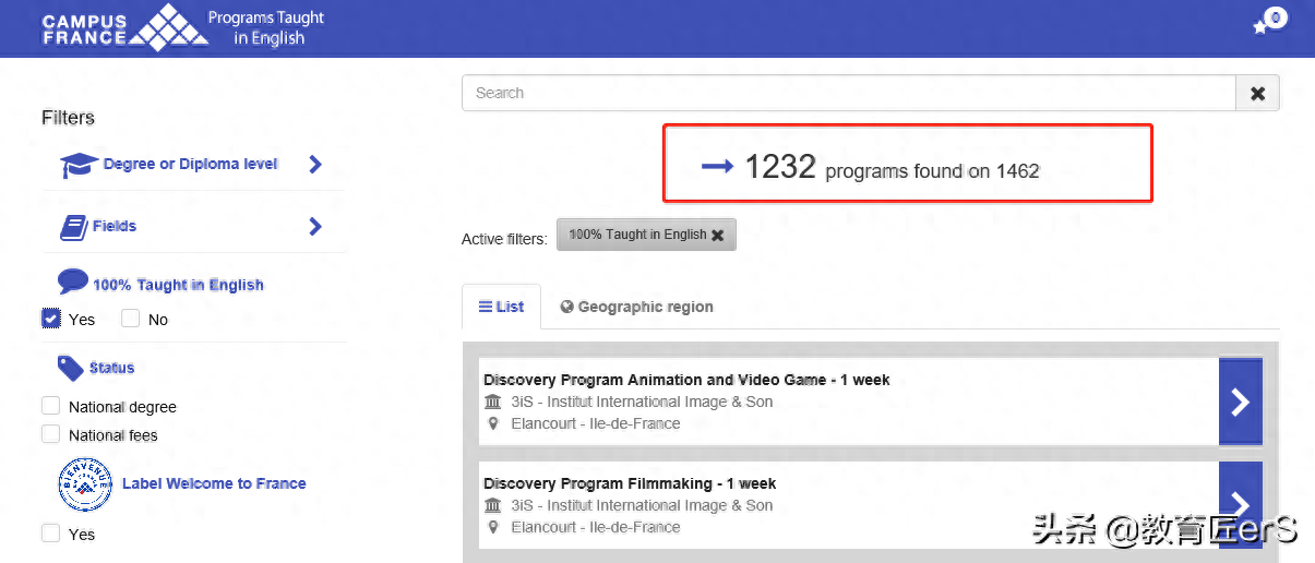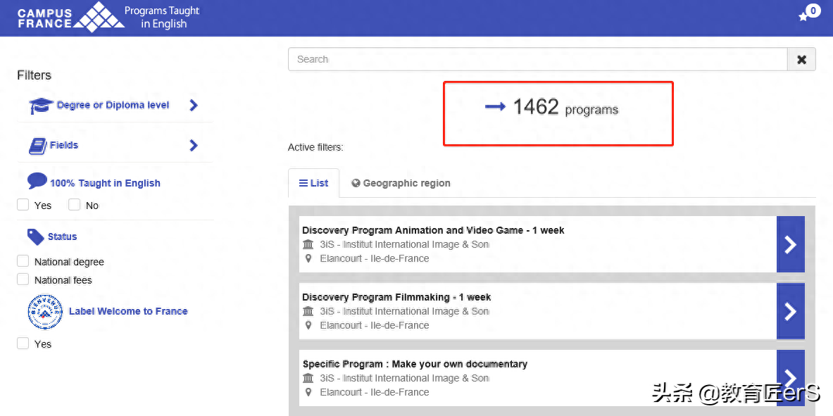 除法语课程之外,法国高校共开设1462种英文授课的专业课程,其中有1232个项目为纯英文授课。