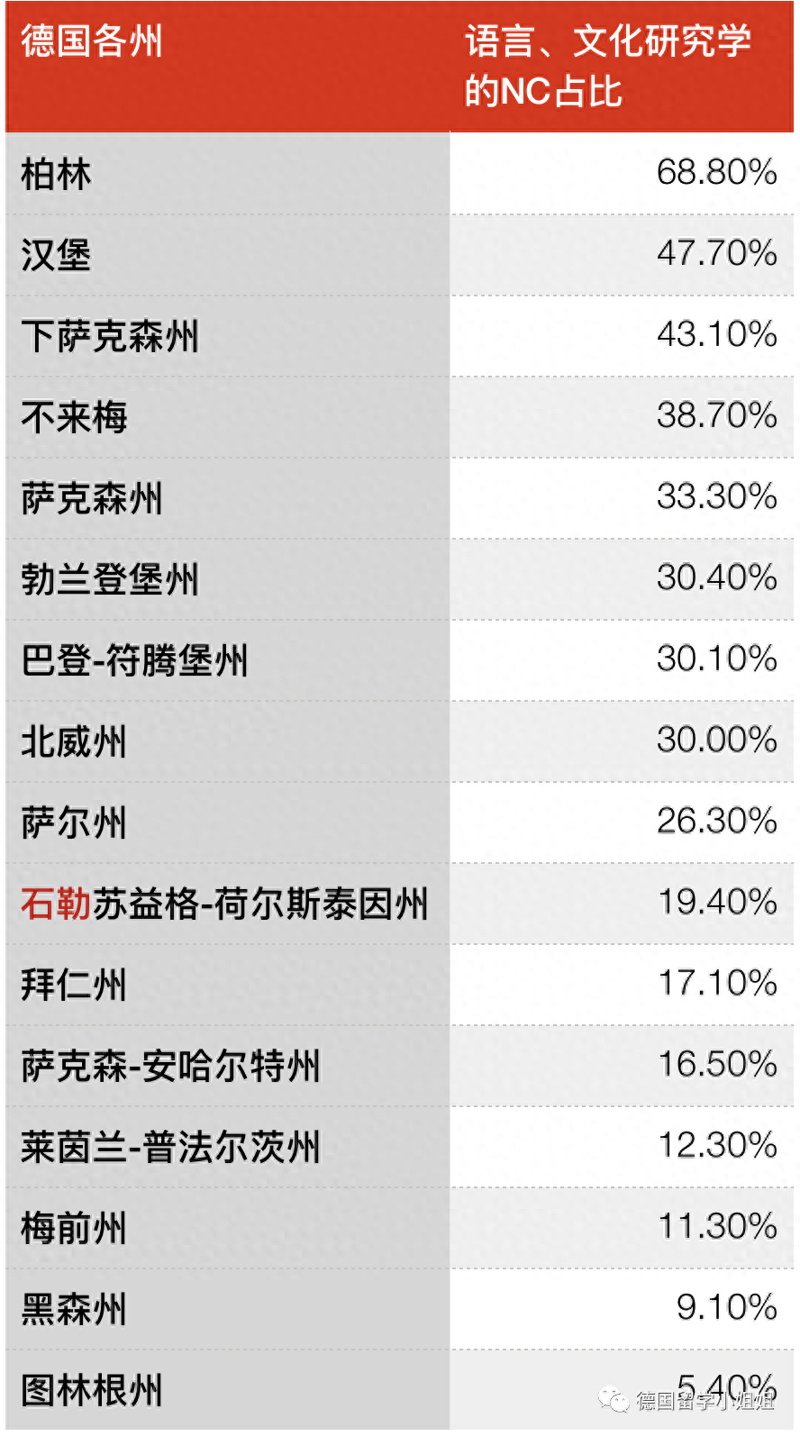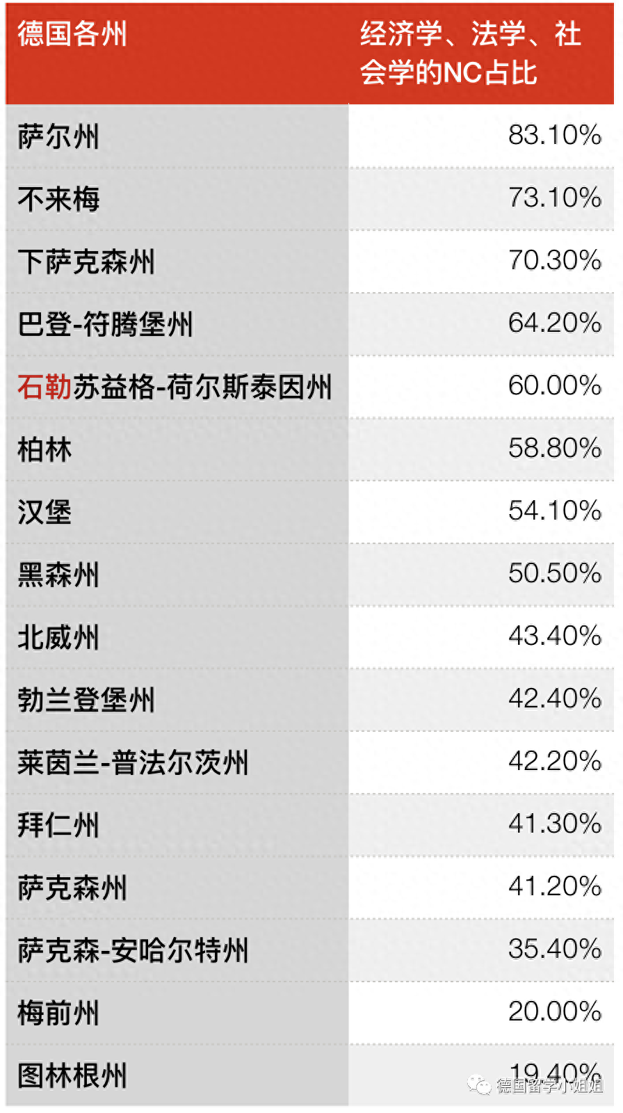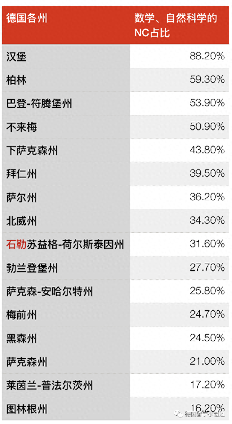 德国是联邦州制,各州都有很大的权利。对于NC专业的占比,各州也是傲娇的大不相同。