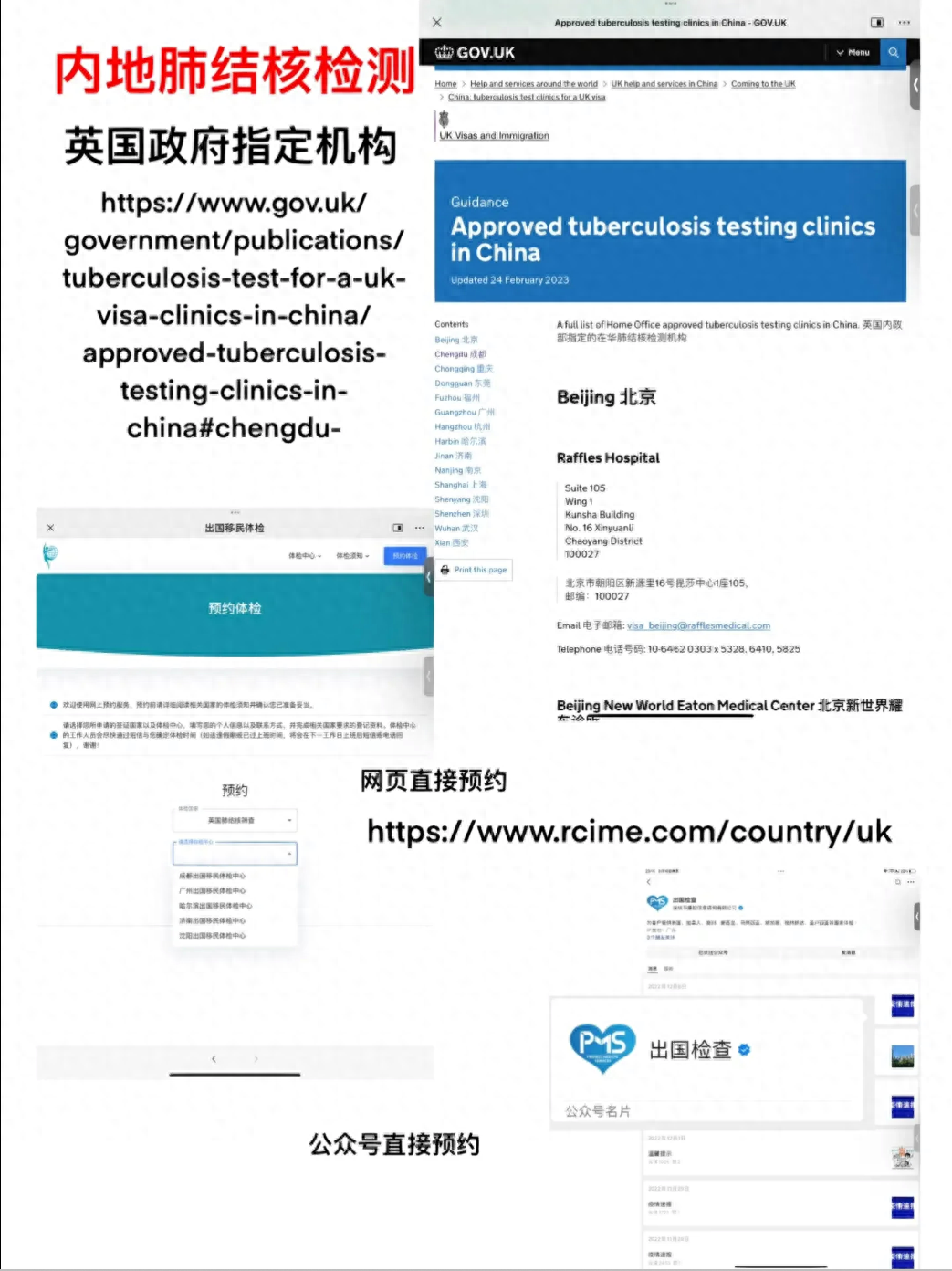 申请六个月以上留学签证时申请人需要在官方指定的医院进行肺结核体检,并开具相应的体检证明。申请人需要提前进行网上或电话预约,并按照预约时间前往医院进行检测。