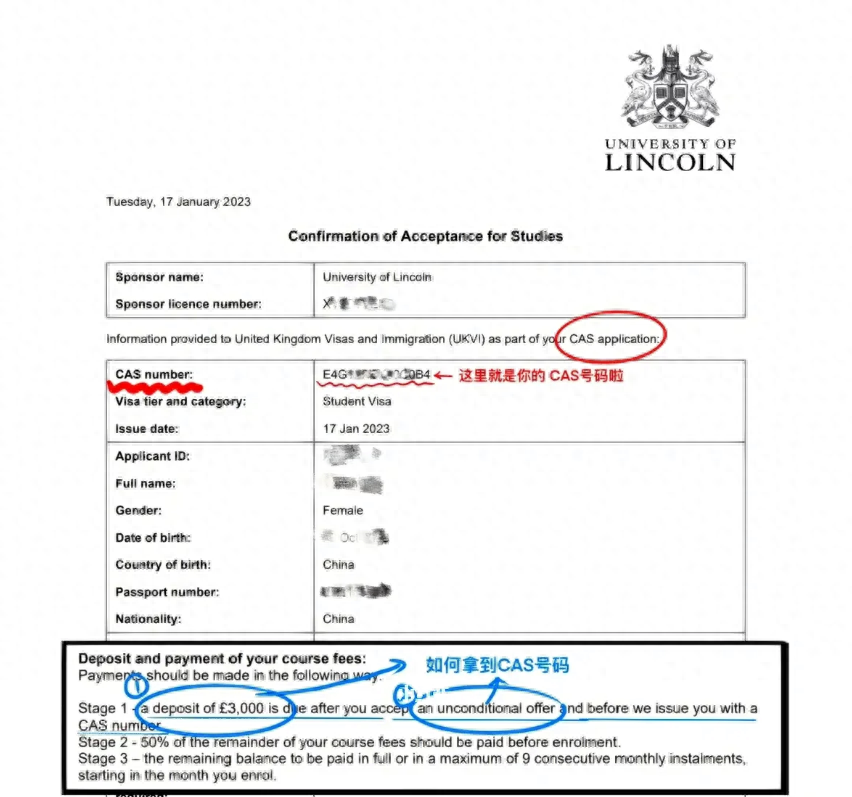 每个人在拿到英国大学offer并交纳首次学费预付金后,都会由该校出具录取确认函,称为CAS。