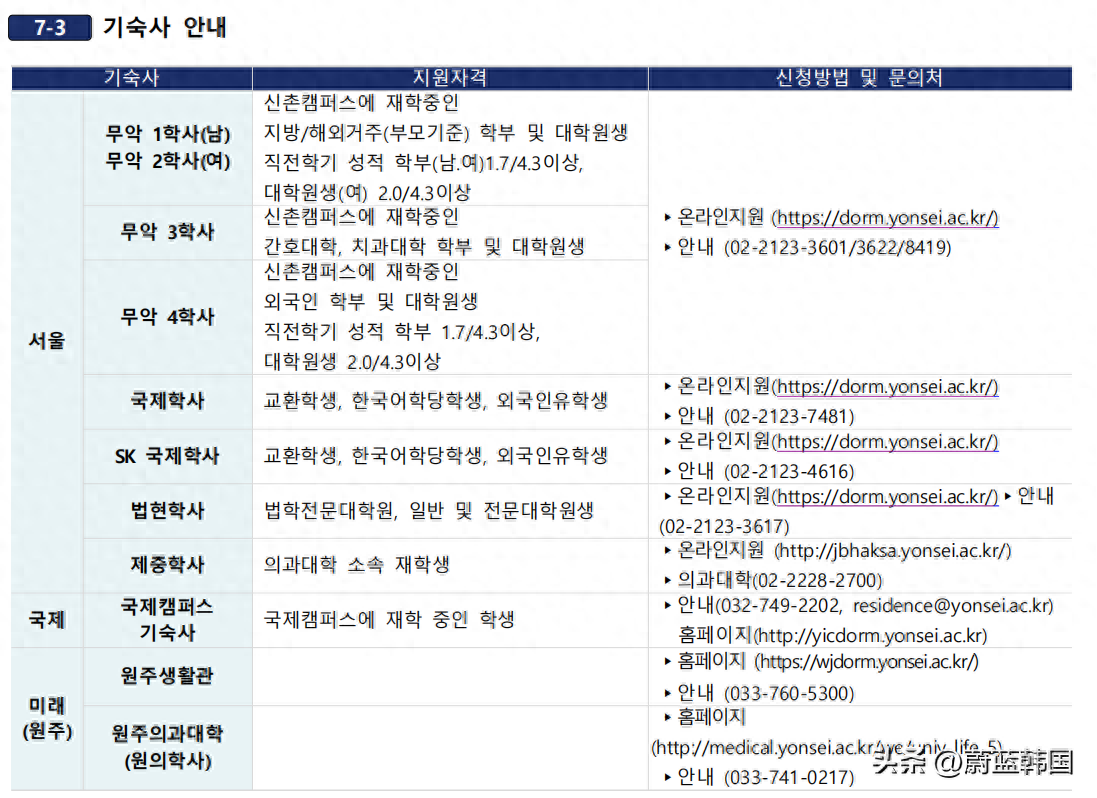 再者,很多学校在选拔宿舍生时会参考学业成绩,对申请者的国籍、绩点等方面做出了明确的要求。下图为延世大学在简章中公布的宿舍申请资格。