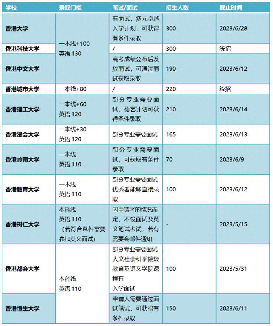以下是针对高考生的2023年香港本科各大高校入学政策: