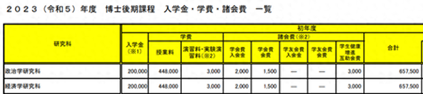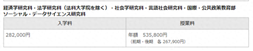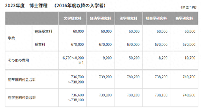 首先,我们看下国公立大学的博士费用。国公立大学一般是由国家或地方政府资助,所以学费也是比较便宜的。