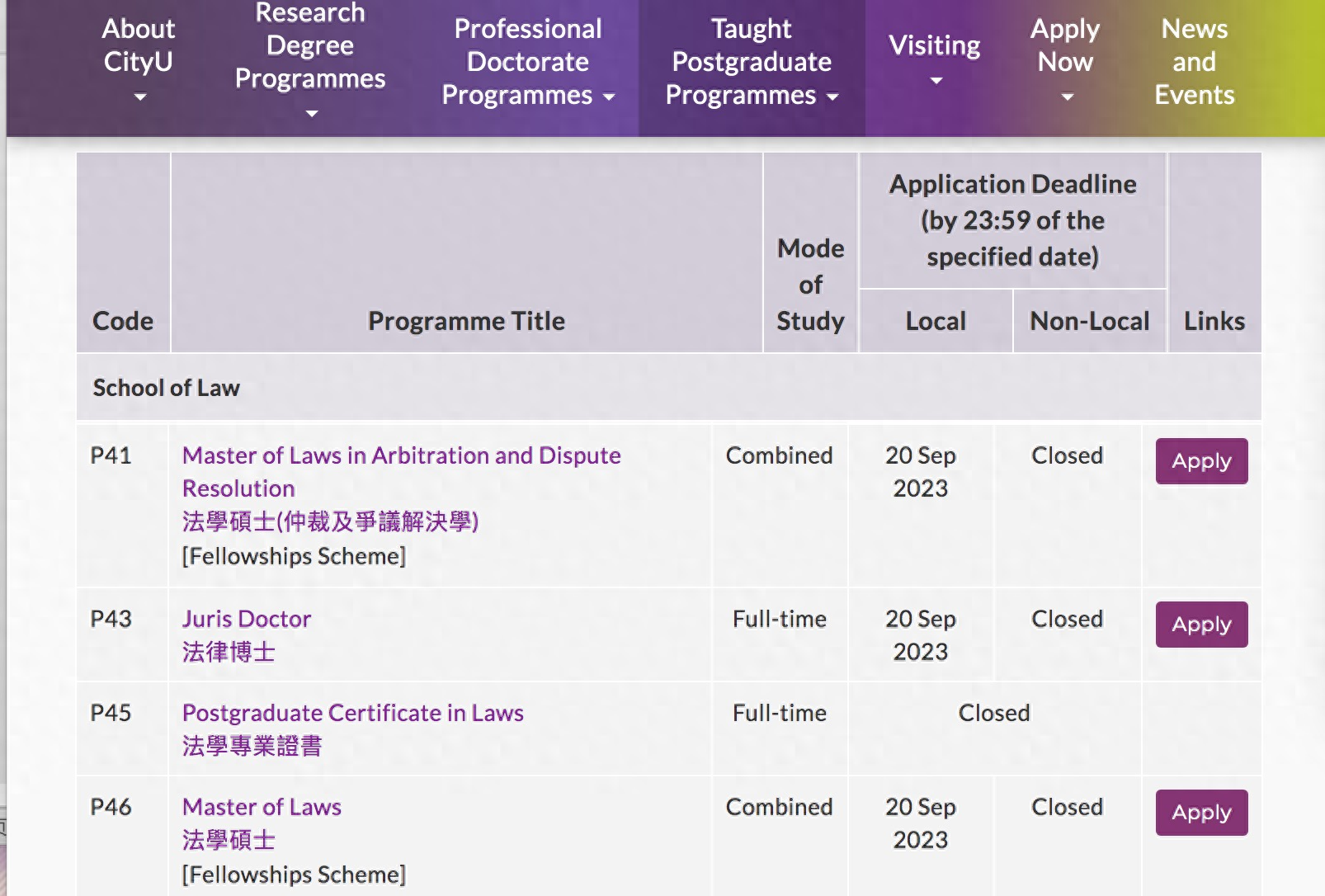 Master of Laws in Arbitration and Dispute Resolution仲裁与争议(2007年开设至今)