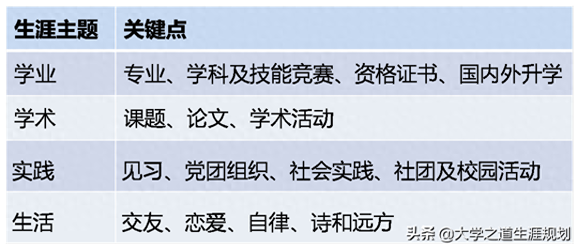 大学四年生涯规划主题及关键点