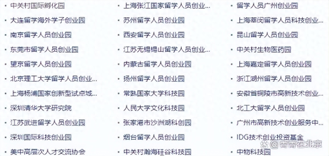 除了上述的中关村科技园外,国内不少省市都设立了针对留学归国人才、或是留学人员享受优惠政策的创业园区: