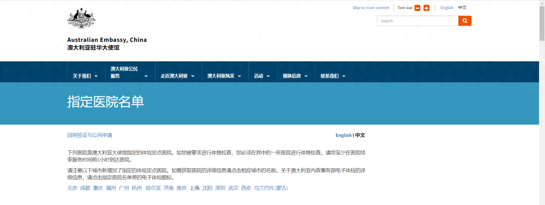 澳洲移民局指定的体检医院地址和联系方式: