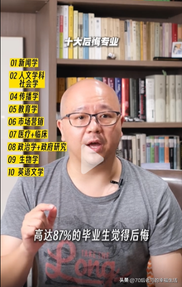 看到一个介绍美国大学的十大后悔专业的视频,觉得蛮有意思的。可以和最近的张雪峰的一些建议结合着比较一下。