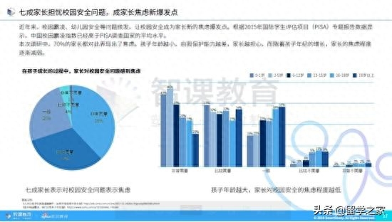 近些年,国内及海外校园安全问题频发,中国家长对孩子人身安全的担忧程度远远超过了对学习成绩的重视,报告显示,将近70%的家长在孩子成长过程中对校园安全问题感到焦虑。当然,孩子年龄越大,家长在这一问题上的相对焦虑指数反而越低。