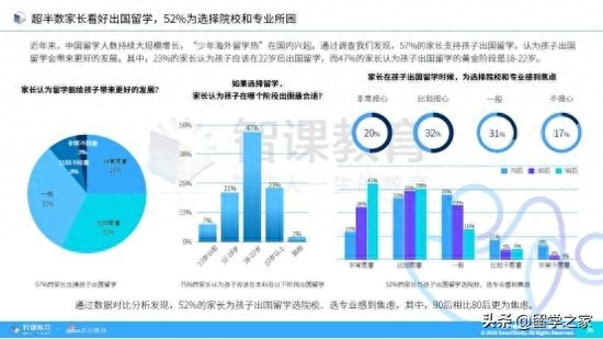 近些年,中国留学人数呈现大规模增长的趋势。根据教育部今年公布的数据,2017年国内出国留学人数突破60万,其中前往美国留学32万人。报告显示,57%的家长支持孩子出国留学,47%的家长认为18-22岁是孩子出国的黄金阶段,其中90后家长为孩子留学还是参加高考更显焦虑。