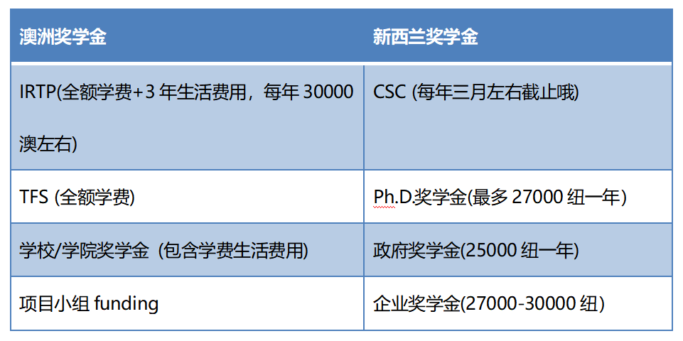 澳洲和新西兰的大学和研究机构为有志于攻读博士学位的学生提供了多种奖学金和资助计划。根据资助的目的和领域不同: